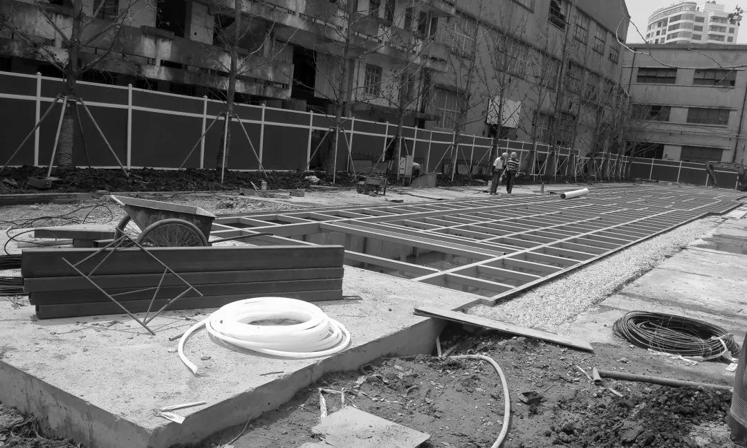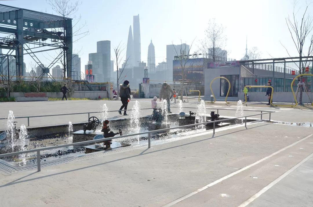 The concrete surfaces and steel rail structures of the welding platform were protected with fresh paint, transforming them into innovative displays of industrial heritage. The main design feature of the Dry Fountain Plaza retains the original water troughs used during operations, integrating them with mechanical valves from the site to create a set of dry fountain installations that combine water features with mechanical sculptures.