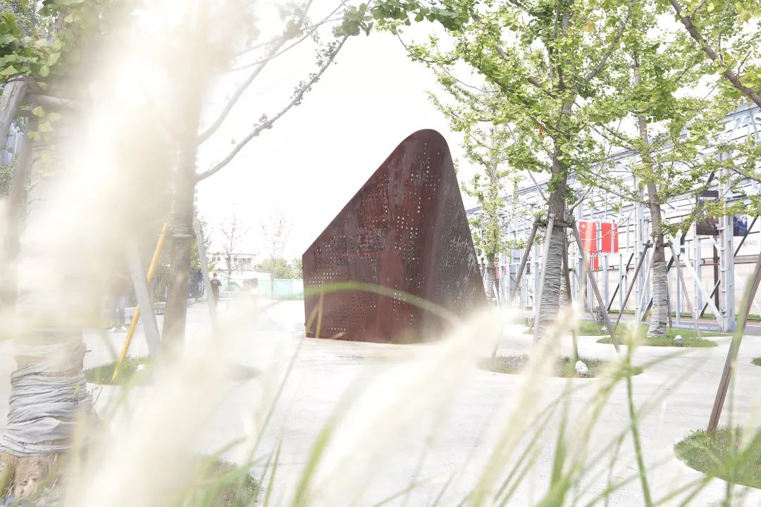 Anchored by the surviving half-wall of the historic factory building, the landscape seamlessly connects to the ginkgo grove and miscanthus flower beds at the entrance of the Ship Row Sculpture Plaza. Alongside the elongated sleeper benches, several sets of mechanically rotating wheels are displayed in open-air exhibitions.