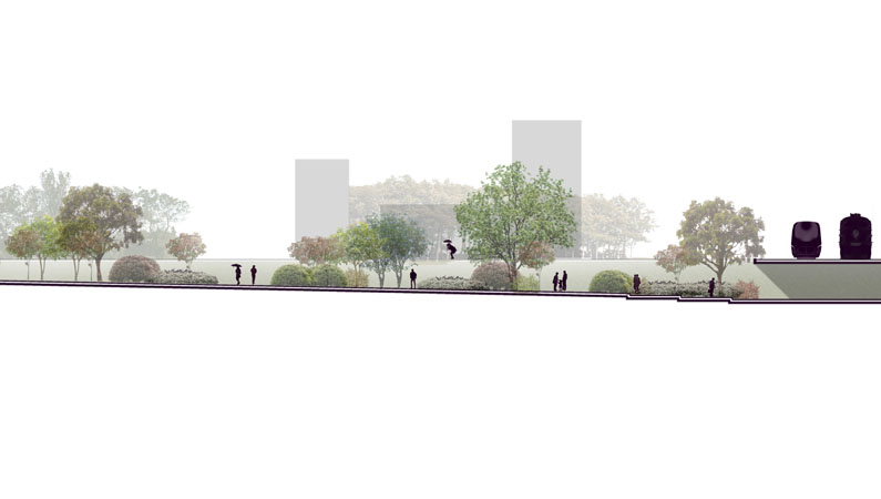 Our design approach intentionally reinforces rather than disrupts the strong axial presence of these transportation systems. At the opposite terminus of the station axis, we propose creating an attractive focal node comprising research facilities, exhibition spaces, and conference venues, strategically designed to encourage pedestrian flow and activity throughout the site.