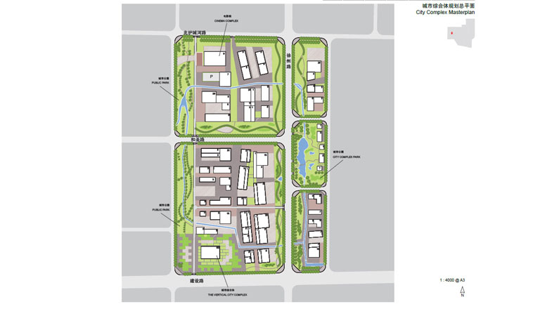 This comprehensive urban design operates across three spatial scales: