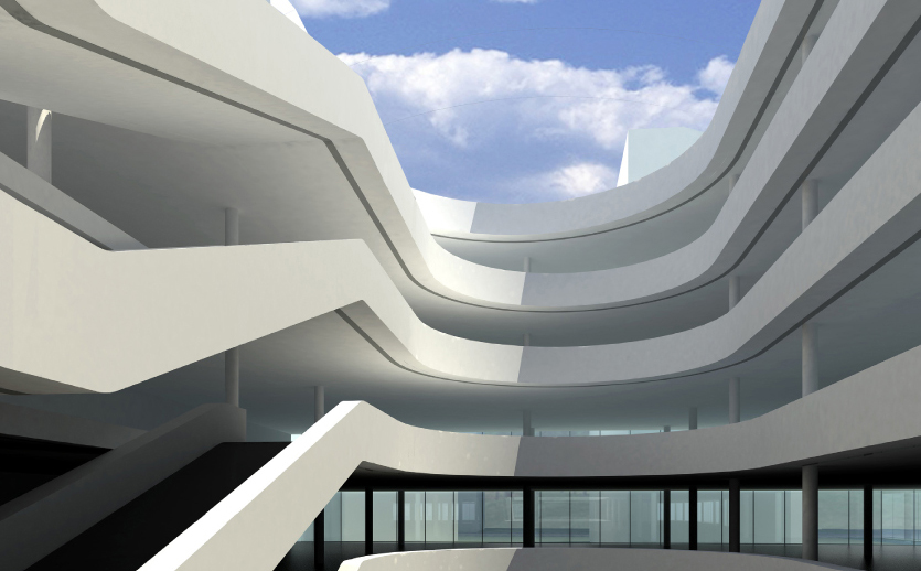 This vertical circulation spine transforms the building's interior into an activated public realm while maintaining corporate functionality. The transparent façade treatment visually connects this internal vitality to the urban context, reinforcing the tower's dual role as both corporate headquarters and civic landmark.