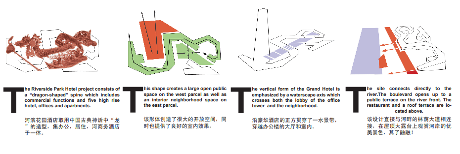 The Ningbo River Park Hotel will be situated at a key location within the city of Ningbo, between the Old Town and the new Central Business District. It will serve businessmen and travelers from all over the world as a convenient and luxurious refuge along the beautiful banks of the Feng Hua River. The hotel will also provide more public spaces for the city and will form a beautiful skyline.