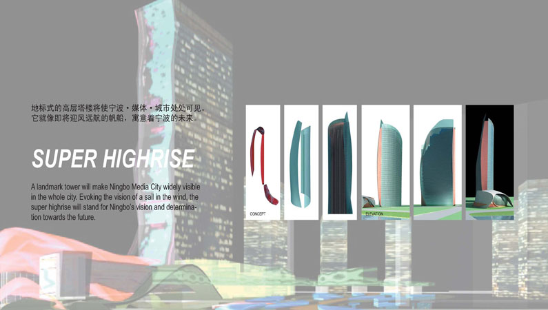 This century is the century of media. Communication and information are now key factors for a prospering economy. The coastal city of Ningbo is setting the pace for China’s rapid development and devoting itself to a future of new technologies. Ningbo Media City will be the core of the city’s international activity. The site is located in the downtown area of the city, opposite the famous Old Bund area and the new commercial centre of Ningbo Tianyi Plaza. Tianyi Plaza is mostly for recreational and commercial use. The Old Bund is one of only a few remaining historic river fronts, with a history of more than one hundred years. It is now Ningbo’s center for food, entertainment, leisure and art. Traditional Chinese culture mixes with European styles in the diverse historical architecture of the site, including its famous classical church. This core area is now set to become a modern and unique business area. Ningbo Media City will help to prepare Ningbo for the future. In conjunction with Tianyi plaza and the Old Bund it will shape the city into a flexible, multifunctional centre for commerce, business, leisure, culture and entertainment.