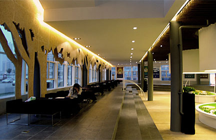 The design of this Clubhouse in Luoyang is based on the idea of connecting the building interior with the surrounding landscape. The multifunctional building is created as one fluent space spreading over two stories and ending in a roof terrace. The different functions are separated by levels, but still have a visual connection to allow maximum flexibility. The flow of the building’s interior space is also expressed outside, on the building façade.